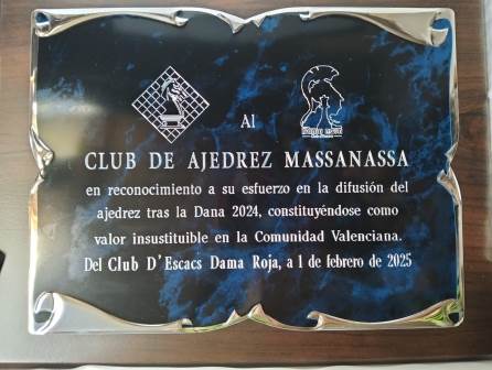 Ayer El club d'escacs Dama Roja nos entregó esta placa maravillosa. Un gesto que nos ha emocionado y que lo llevaremos en el corazón.