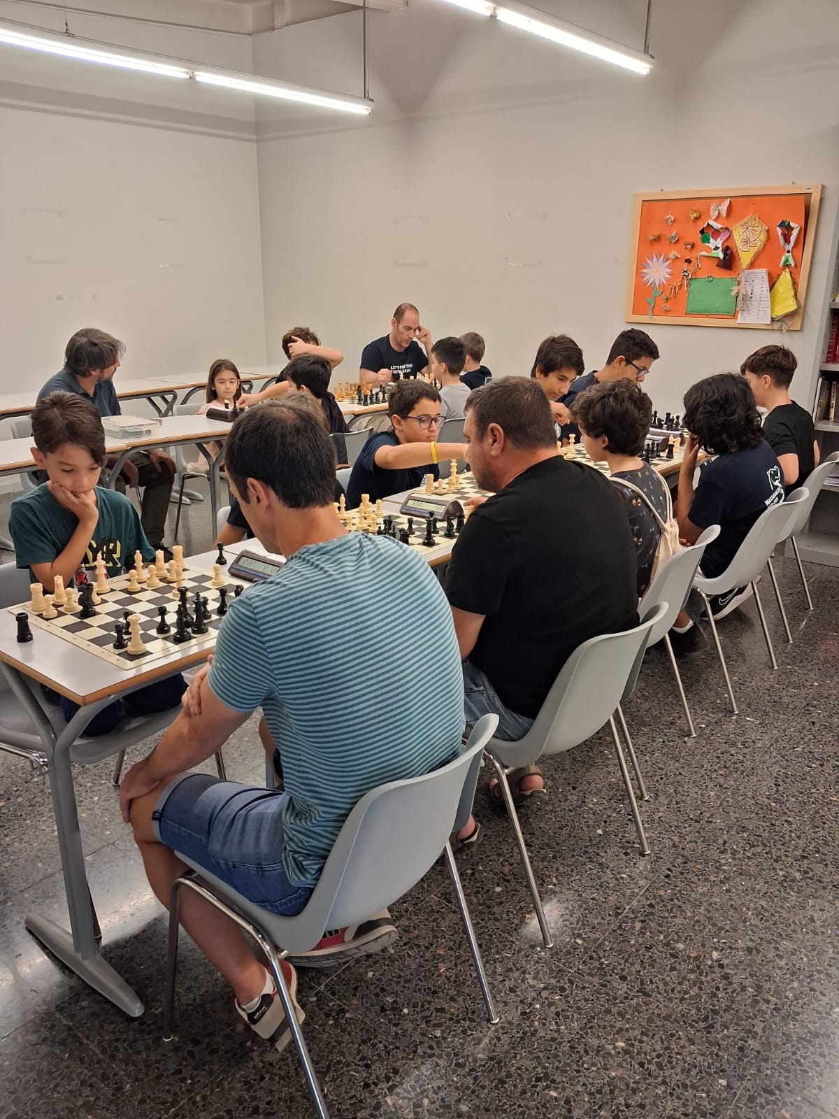 19-8-2022 Poblaciones de los jugadores, alumnos del Club de ajedrez Massanassa. Massanassa, Catarroja, Valencia, Parque Alcosa, Benetusser, Alfafar, Sedaví, Paiporta, Picaña, Albal, Silla, Picassent, Alcasser. Ojo que llegará septiembre y te quedarás sin plaza ya que en el local estamos al límite de capacidad. 7-8-2022 REABRIMOS DESPUES DE LAS VACACIONES, NUESTRO CURSO DE AJEDREZ. SÁBADO 10 DE SEPTIEMBRE Y ABIERTA INSCRIPCIÓN PARA EL "CAMPEONATO PROVINCIAL INDIVIDUAL DE LA FEDERACIÓN" (INSCRIPCIÓN INCLUÍDA CON LA CUOTA DEL CLUB) (7 SABADOS POR LAS TARDES) ( 17 Y 24 SEPTIEMBRE, 1,15 Y 22 DE OCTUBRE Y 12, 19 DE NOVIEMBRE) 25-6-2022 Entrega de los trofeos del social, realización de la simultanea de ajedrez a 28 tableros realizada por David Martíny agradecimiento del club de ajedrez hacia el ayuntamiento por la gestión de logística con el aporte de las 12 mesas y 30 sillas, en la plaça del camp del Turia y por supuesto por la adquisición de los trofeos entregados.