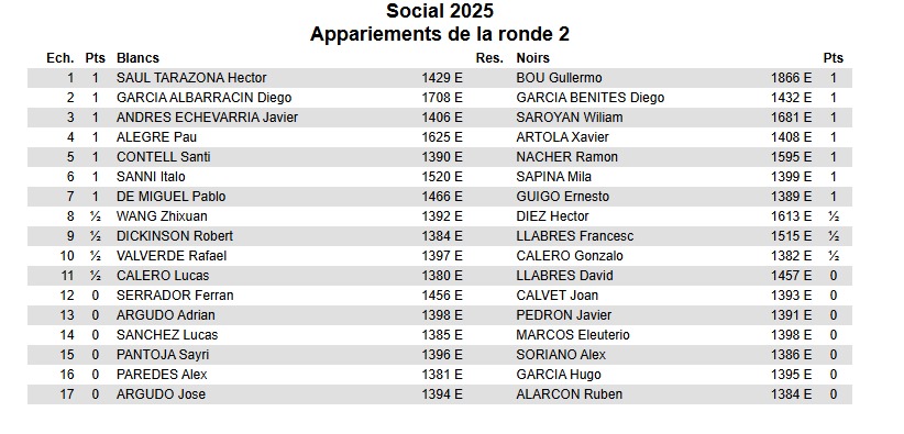 En el social B, Vicente y jorge empataron en la primera mesa quedando en cabeza seguidos por Isabel Soliva y Alvaro Frechina, detrás un gran pelotón con 2,5 puntos (todo por decidir) En el social A, Máxim venció al actual campeón y sigue invicto. En la última ronda Máxim puede pinchar y se puede dar el caso de un triple empate.