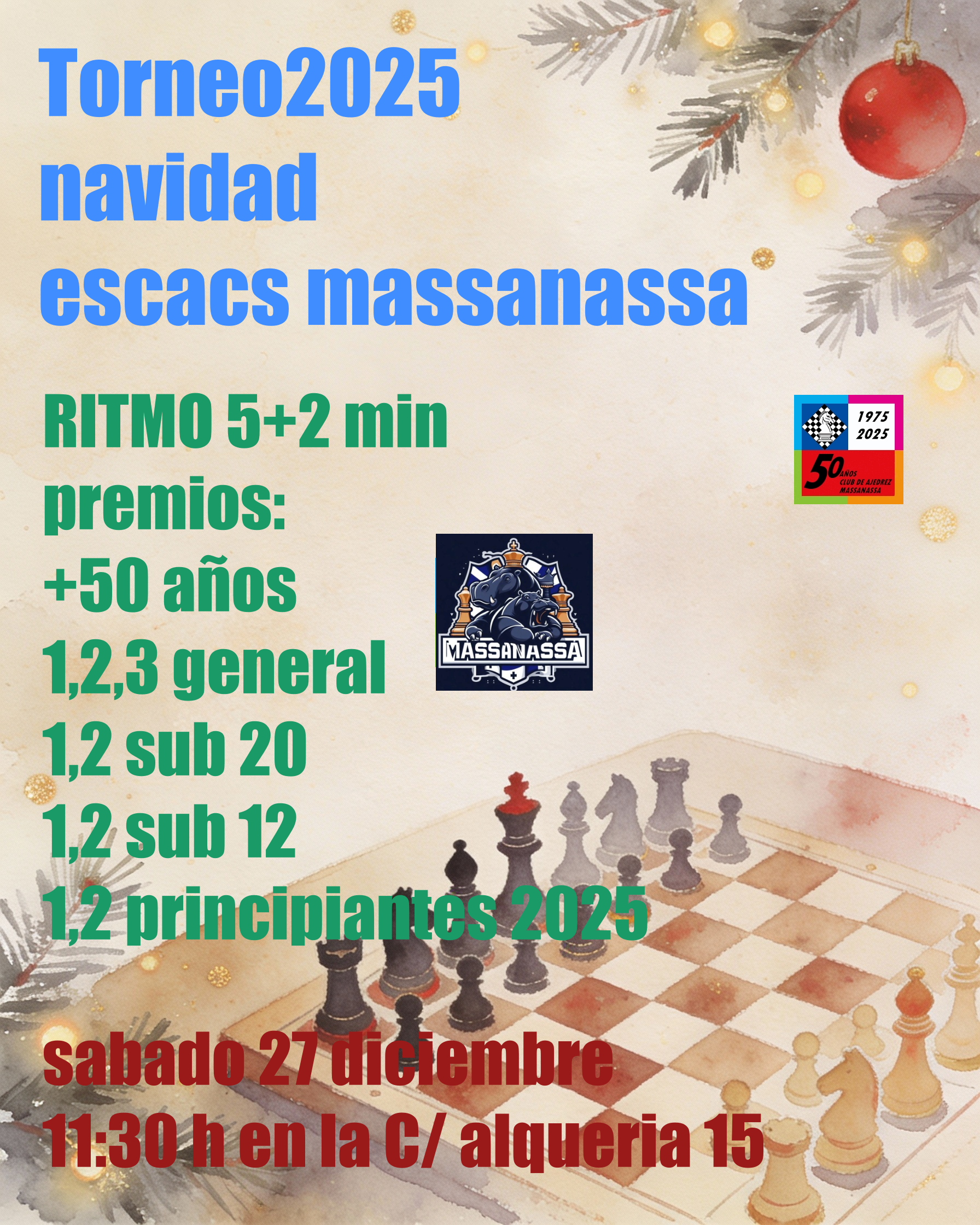 Inscripciones ajedrezmassanassa@gmail.com o whatsapp 615 39 58 01