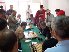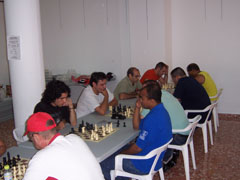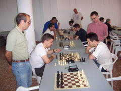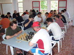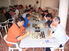 Tan fuerte ha sido el torneo que la FIDE nos ha propuesto clasificarlo como valedero para la Copa del Mundo. Entre los jugadores podían oirse comentarios como estos: "joder, la primera en la frente", o "aquí llueven hostias como panes", o incluso "no sé como he podido perder con ese paquete, si solo me he dejado la dama". La organización del evento fue perfecta, comenzando el torneo puntualmente veinte minutos después de lo anunciado, y finalizando con la precisión de un reloj suizo, o en su defecto, con la de un excalibur digital; solo treinta minutos de retraso según lo previsto. La anterior parrafada es una mentira como una catedral, por supuesto; el torneo se ha desarrollado sin pausa, sin apenas tiempos de espera entre rondas, y el "culpable" de esto ha sido nuestro árbitro de cada año, Manuel Alfonso, que hace su trabajo a la perfección. Jugar siete rondas en apenas cuatro horas está más que bien. El comportamiento de los participantes ha sido ejemplar, ya que este año no ha habido amago de intentar linchar al árbitro, y se ha aceptado con deportividad la clasificación final, sin necesidad de pataditas bajo las mesas, zancadillas, escupitajos o las típicas collejas al pasar por las mesas. Ahora en serio, gracias a los 69 participantes en el torneo. Tenemos que agraceder la colaboración que nos ha prestado el Club Escacs'90, porque sin ella nos habría sido más difícil montar nuestro Torneo. Gracias también a la FTVA, por habernos anunciado en su web. Y como todos sabemos, el pollo este no habría podido montarse sin los que están a primera hora de la mañana montando.